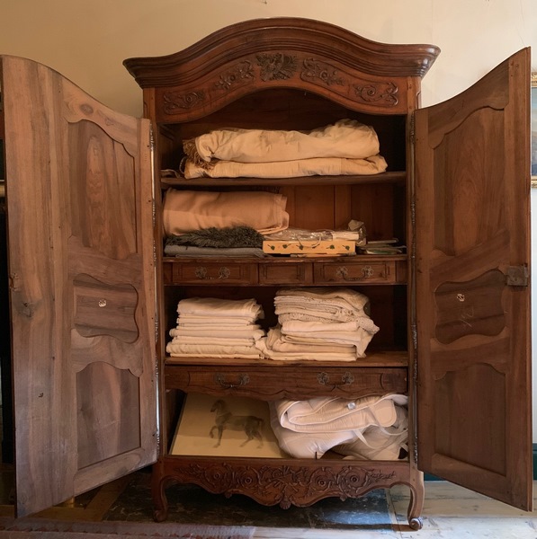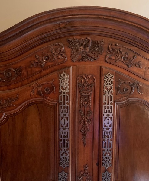 Armoire de mariage en noyer ouvrant a deux vantaux.