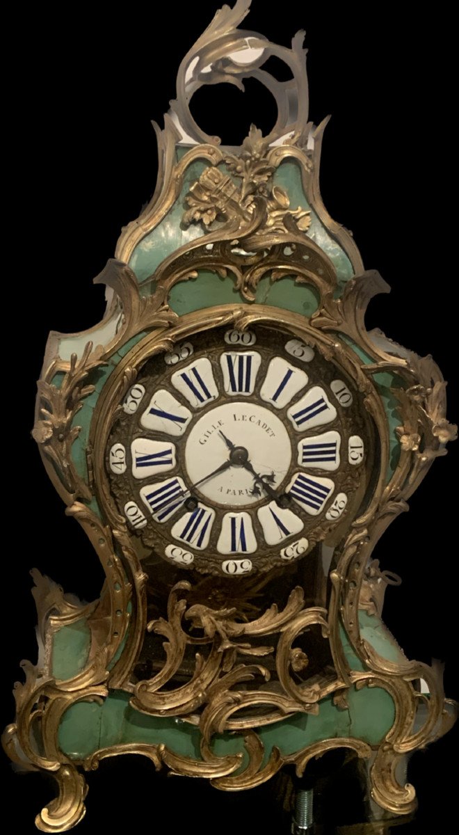 Cadran de cuivre doré émaillé de chiffres romains signé Gille Le Cadet à Paris .