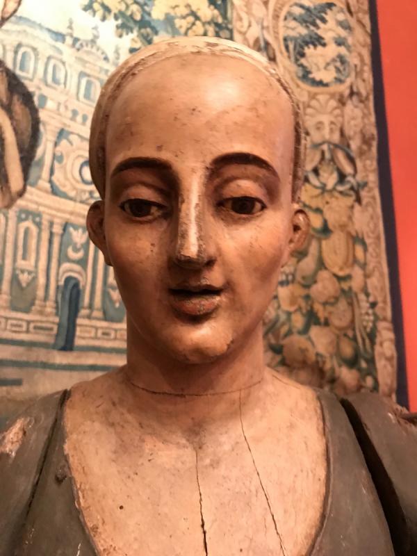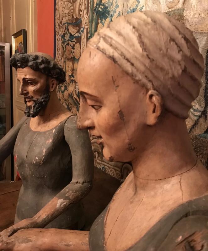 Ces sculptures en buste très réalistes étaient , bien sûr destinées à la dévotion, recouvertes d’étoffes précieuses et présentées lors des processions .le caractère haute époque très expressif , le buste dénudé de tout ornement ,tout cela rend très actuel ces très belles œuvres .