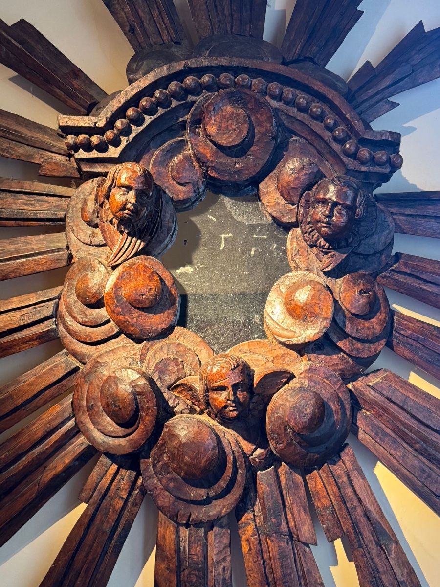 Dans un décor rayonnant , des têtes de chérubins dans des nuées .