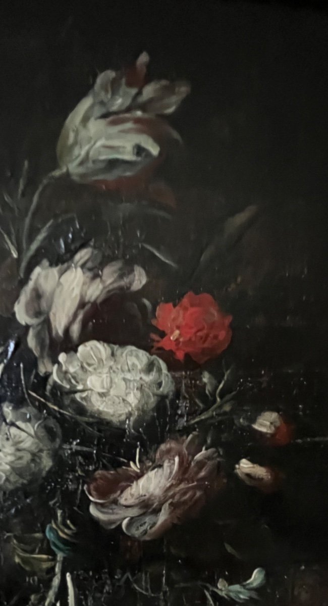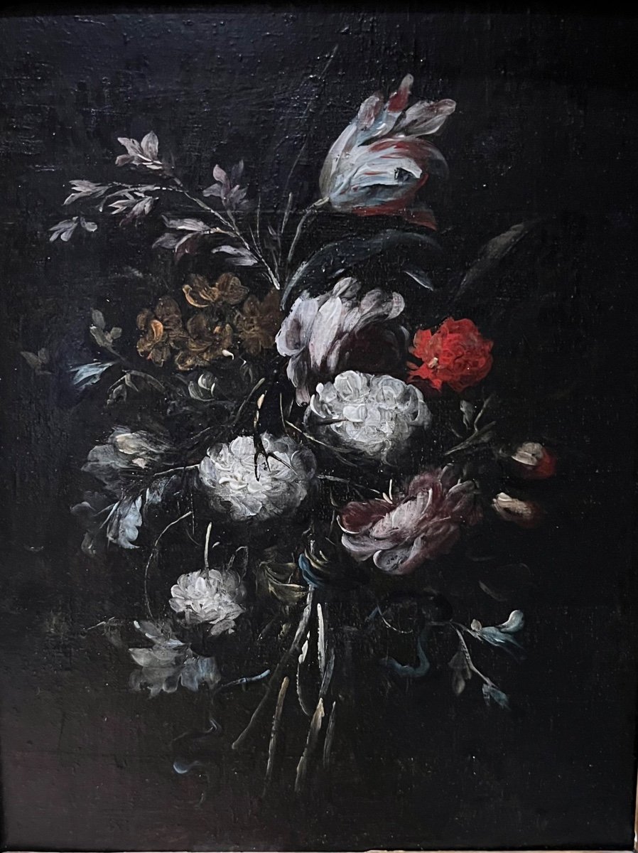 Composition très libre de fleurs diverses à l;instar des bouquets flamands.
