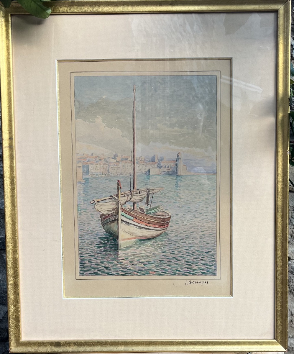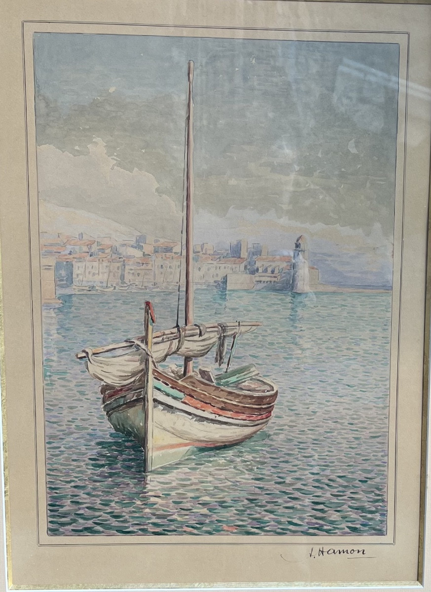 Aquarelle représentant la plus belle vue du port de Collioure .